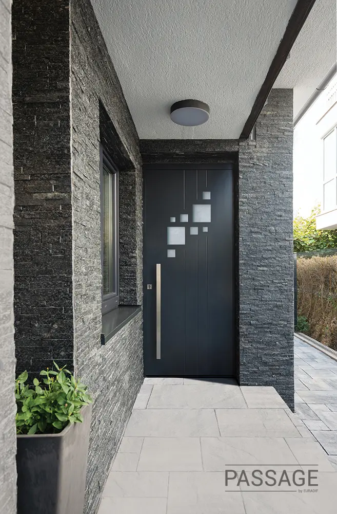 Les anciennes menuiseries ont souvent bien vécu. Leur état s’est dégradé au fil du temps : fentes, ouvrant ou dormant voilés, trous dans la menuiserie, etc. De même, le matériau de construction de la porte en lui-même n’est certainement pas optimal au niveau de l’isolation, que ce soit pour lutter contre la chaleur ou le froid : bois peu épais, vitrage fin, etc. Nos portes d’entrée en aluminium monobloc PASSAGE, par exemple, intègrent un coefficient d’isolation Ud allant jusqu’à 1,1 W/m²/K.