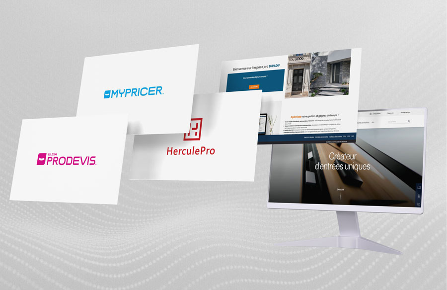 EURADIF propose un écosystème complet pour faciliter le quotidien des professionnels. Nos bibliothèques de produits sont intégrées dans les logiciels de chiffrage PRODEVIS, MYPRYCER et HERCULE PRO, vous permettant d’éditer rapidement vos devis avec précision. Pour aller plus loin, notre configurateur 3D BATITRADE vous offre la possibilité de modéliser une porte, de la personnaliser en direct et de la projeter sur la façade de votre client. Cet outil ludique et performant améliore l’expérience client et simplifie la commande. L’attribution de la licence BATITRADE est offerte, sur simple demande !