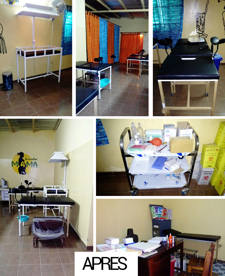 Sénégal : Réfection de la maternité située à Ndiaganiao. Réfection des murs, pose de carrelage, réception du nouveau matériel (tables d’accouchement…), création de paravents pour respecter l’intimité des femmes.