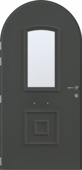 Porte d'entrée vitrée en aluminium cintrée