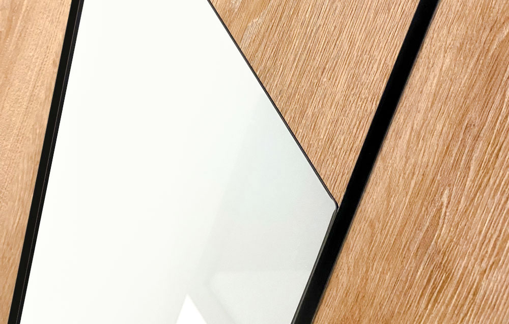 Le modèle Factory séduit par son esthétique industrielle, mêlant un décor bois chaleureux à un vitrage serti de joncs Alunox noirs, pour une porte d’entrée en aluminium au style affirmé et contemporain.