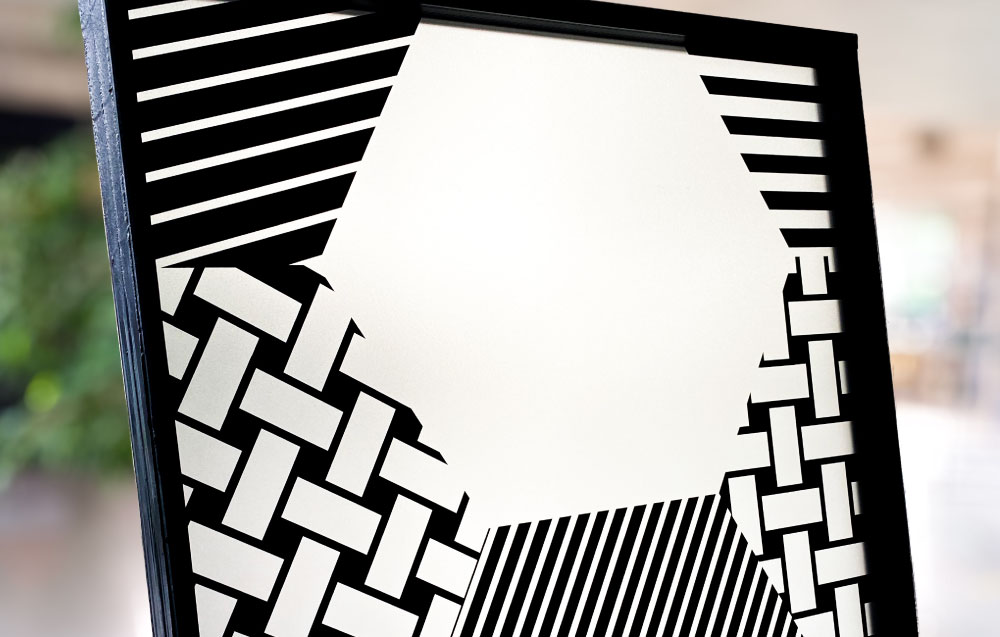 Le modèle Hybride se distingue par un vitrage alliant impression numérique et zones dépolies, créant un jeu de motifs géométriques à la fois moderne et raffiné. Ce mélange de textures offre un équilibre subtil entre transparence, intimité et design audacieux. Existe en blanc et en noir.