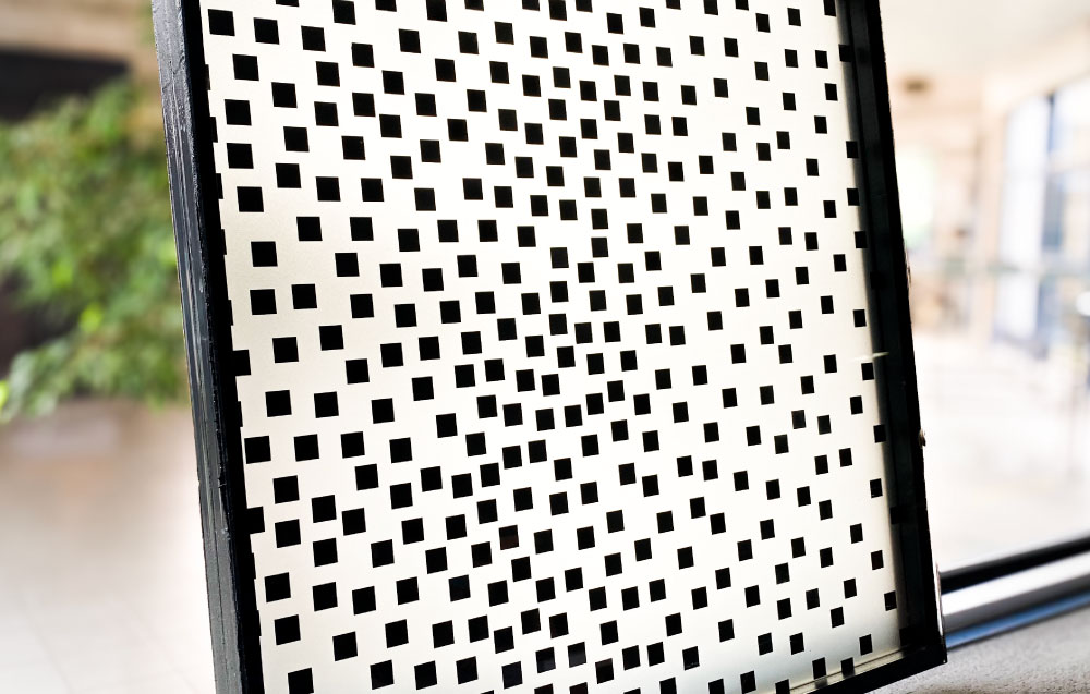 Le modèle Intemporel se distingue par son vitrage dépoli orné de petits carrés noirs ou blancs, au choix, créant un dégradé visuel original. Ce motif subtil apporte une touche contemporaine et équilibrée à cette porte d’entrée en aluminium.