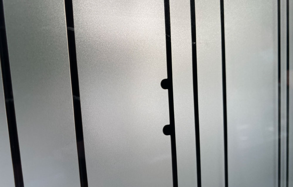 Le modèle Larmes se distingue par ses motifs en résine disposés verticalement, disponibles en version noire ou transparente. Ce travail délicat du vitrage crée un effet de rythme et de profondeur, sublimant le design de cette porte d’entrée en aluminium.