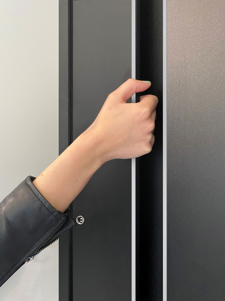 Les modèles Mirage se distinguent par leur poignée intégrée, subtilement mise en valeur par un éclairage LED. Cet insert lumineux souligne la ligne verticale de la porte et crée une ambiance à la fois esthétique et accueillante. En journée, la poignée se fond avec harmonie dans la surface de la porte ; à la tombée de la nuit, la lumière diffuse révèle toute la modernité et le raffinement du design.