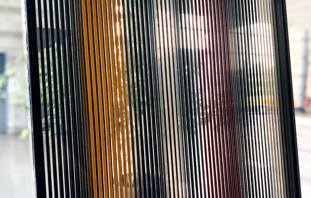 Le modèle Moiré attire le regard avec son vitrage composé de fines lignes verticales colorées, imprimées sur deux verres extra clairs. Ce jeu de superposition crée un effet visuel vivant et changeant, donnant à la porte d’entrée en aluminium une personnalité audacieuse et contemporaine. Il est également disponible dans une version plus douce, déclinée en nuances de gris.