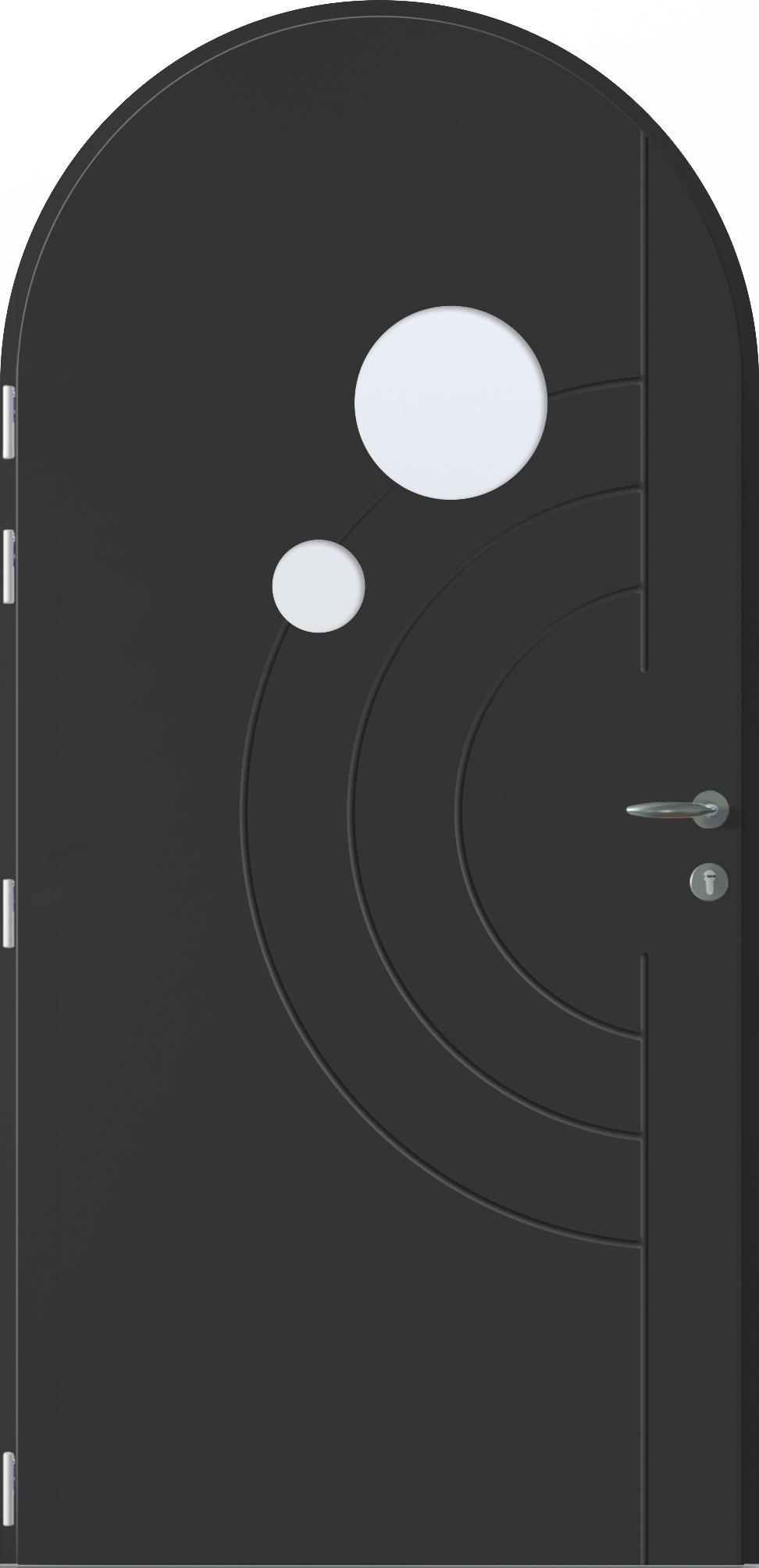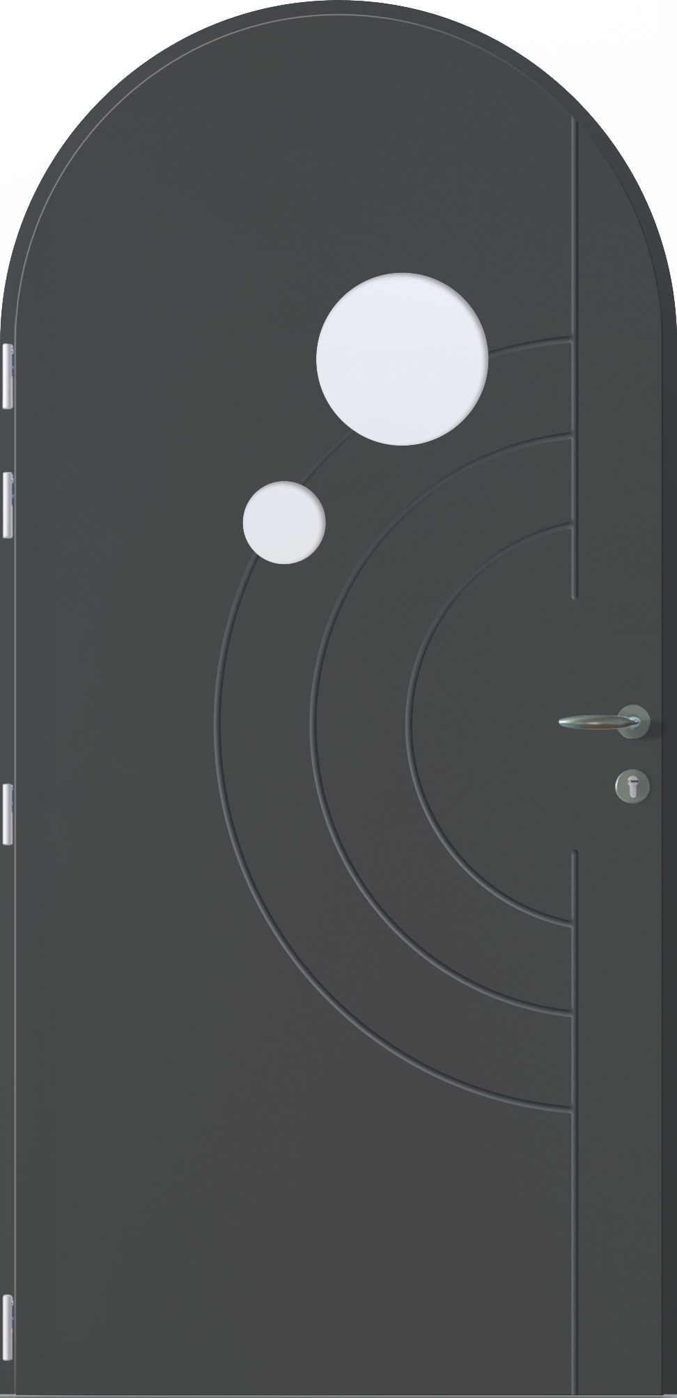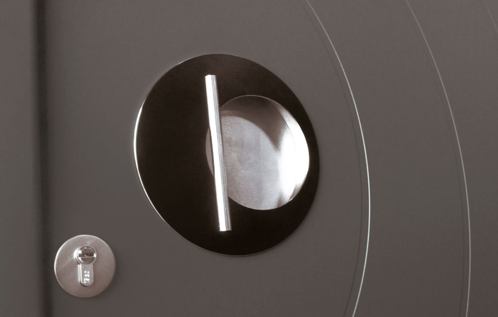 Le modèle Onyx se distingue par sa poignée circulaire en aluminium, intégrée avec élégance dans la surface de la porte. En écho aux courbes rainurées et aux vitrages ronds, elle affirme un design à la fois audacieux et harmonieux.