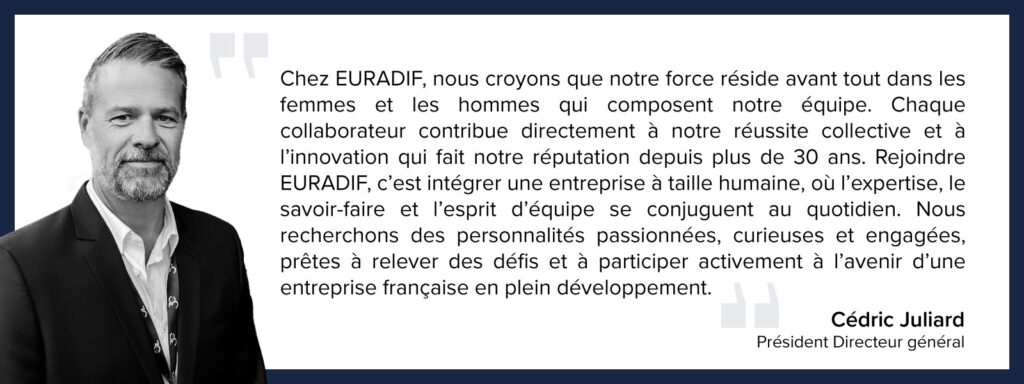 Intégrer EURADIF, c’est rejoindre une équipe dynamique, bienveillante et engagée, où chacun peut évoluer, apprendre, transmettre et surtout s’épanouir dans son métier. Que vous soyez technicien, ingénieur, opérateur, commercial, administrateur ou jeune diplômé, votre profil peut faire la différence.